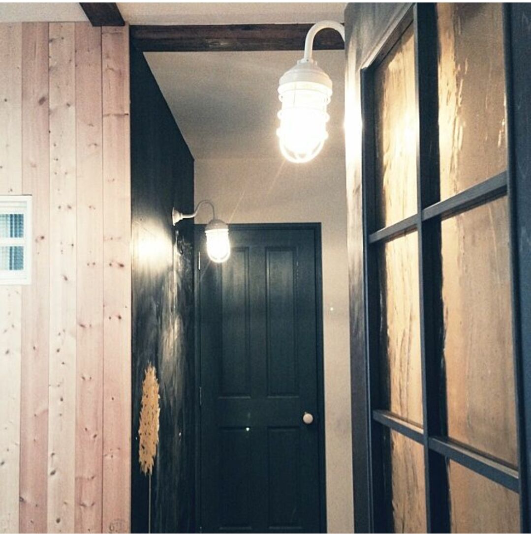 マリンライトと丸ドアノブと黄色の波ガラスの組み合わせが好き