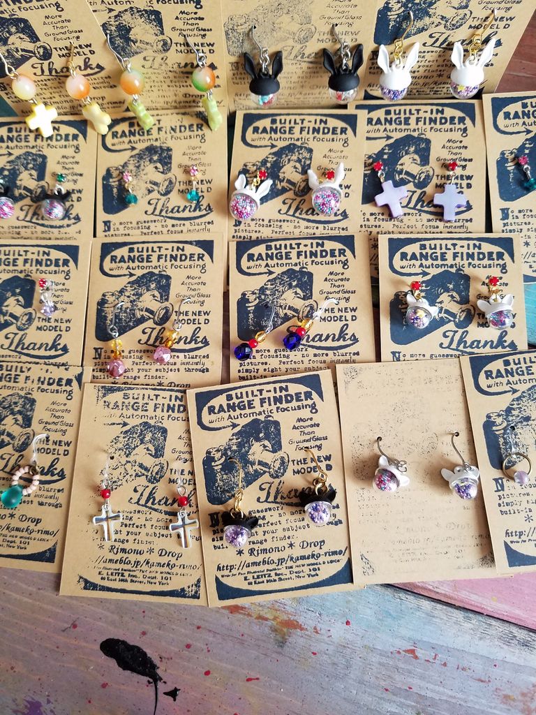 びーずらんぷの材料でピアスも作り出し、ガラスドームのピアスも作り