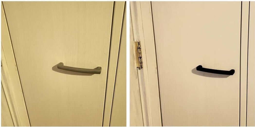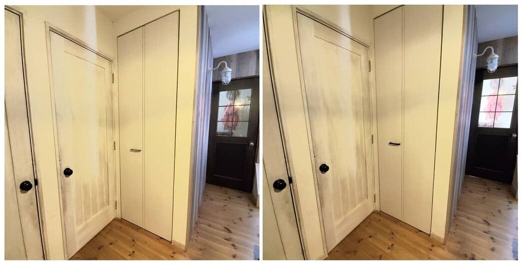 【DIY】クローゼットの取っ手はこうして塗った~荷物多くて中身出すの面倒で取っ手外せない場合~ 2022年02月08日 21:00 こちらの記事のアクセス数が見たことない数字になっていると思ったら編集部の推しに掲載していただいたみたいです。 ありがとうございます!こんばんは!*りもの*ドロップの友希(ゆき)です。 *りもの*ドロップ LINE公式アカウントやってます! 新作の先行告知などこちらでしています 今回もアイアンペイントネタです。もくじ取っ手が取れない?マステで養生スポンジでアイアンペイントBEFORE→AFTER 取っ手が取れない? ほとんどの場合は取っ手をドアから取り外し塗装するのが一番早いのですがクローゼットの荷物を出してクローゼットの内側に入らないと外せません。でも、そんなの面倒くさい!!!マステで養生と、いうことでマステで養生しまーす。意外と大変でした。スポンジでアイアンペイント今回もアイアンペイントの黒をアイアンペイント【200ml】 DIY用塗料 ターナー色彩 塗るだけで金属のような質感に価格:1320円(税込、送料別) (2022/2/8時点)安いスポンジを切ってポンポンするだけ手の入りにくいところは綿棒を使いました。BEFORE→AFTER全然雰囲気変わる!!最後までお読みいただきありがとうございました!! 「DIY」カテゴリの最新記事 タグ :#DIY#DIYやり方#DIY取っ手塗装#リメイク#模様替え#セルフリフォーム#アイアンペイント#ブラックアイアン#アイアン風#取っ手塗り替え < 前の記事次の記事 > コメント コメントフォーム 名前 コメント 評価する リセット リセット 顔 星 投稿する 情報を記憶